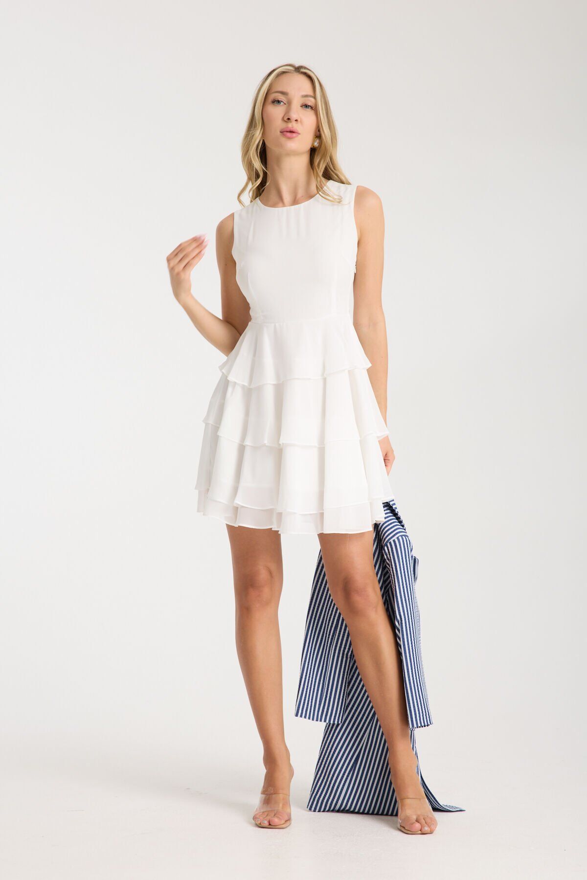 Ürün Gofre Ceket-Şifon Elbiseden Oluşmaktadır ! - Zarif tasarımıyla dikkat çeken bu şifon elbise, günlük kullanımdan özel davetlere kadar her ortamda rahatlıkla tercih edilebilir.; - Gofre ve şifon materyallerin benzersiz kombinasyonu sayesinde hem hafif hem de şık bir görünüm sunar.; - Düğmeli kapama şekliyle kolayca giyilip çıkarılabilir ve pratik kullanım sağlar.; - İnce yapısıyla mevsim geçişlerinde ideal bir tercih olan bu elbise, tüm sezonlarda rahatlıkla kullanılabilir.; - Cep detaylarıyla fonksiyonellik kazanan tasarım, günlük eşyalarınız için pratik saklama alanları sunar.; - Kemerli yapısı sayesinde belinizi vurgulayan bu elbise, feminen siluetinizi ön plana çıkarır.; - Basic siluetiyle her vücut tipine uyum sağlayarak zamansız bir şıklık sunar.; - Çift kapaklı cep tasarımı hem estetik hem de kullanışlılık açısından idealdir; küçük eşyalarınız için güvenli saklama alanları sağlar.; - Dokuma tipinin getirdiği dayanıklılıkla uzun süreli kullanım vaat ederken, şifon materyali konforu arttırır.; - Kadın ve kızların zarif tarzına hitap eden bu parça, her gardrobun vazgeçilmez parçasıdır.; - Trend ortamlarda bile stil sahibi görünmenizi sağlayacak bu elbise, modern çizgilerle geçmişin zarafetini buluşturuyor.; - Uzun kol boyu sayesinde mevsim koşullarına uygun koruma sunarken, 3/4 kol tipiyle hareket özgürlüğü tanır.; - Kruvaze yaka tipi ile sofistike bir duruş sergileyerek feminen hatlarınıza vurgu yapar.; - Çizgili deseniyle dinamik ve enerjik bir görünüm kazandırırken, şifon dokusuyla hafiflik hissi verir.; - 3/4 kol tasarımının sunduğu rahatlıkla gün boyu konforlu bir deneyim yaşamanız mümkün olur.;