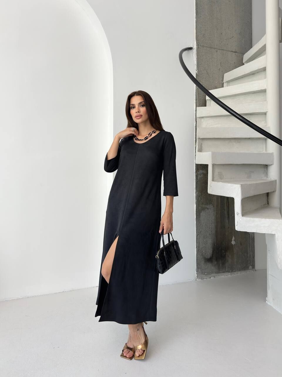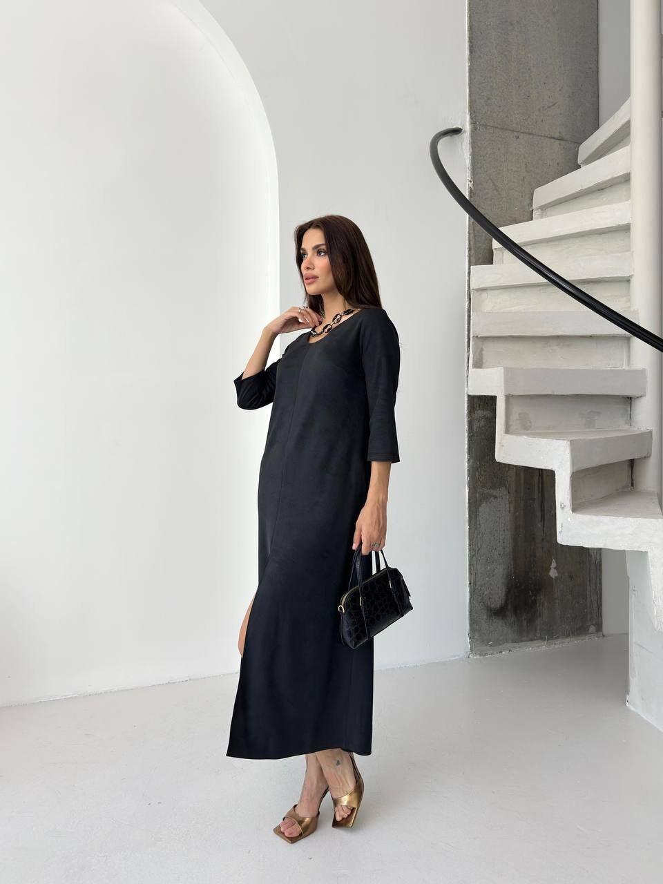 Şık süet elbisemiz, zarif kolye aksesuarıyla birleşerek kusursuz bir stil sunar. Yumuşak dokusu ve modern kesimiyle her ortamda dikkat çeker. Hem günlük hem özel davetlerde rahatlık ve şıklığı bir arada yaşamak isteyenler için ideal bir tercih.